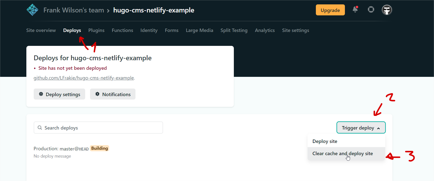 Lo que haremos será irnos a Deploys >> Trigger deploy >> Clear cache and deploi site, esto renombrará nuestro sitio correctamente sin que se rompa.